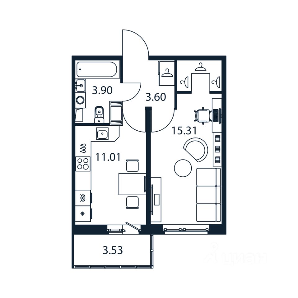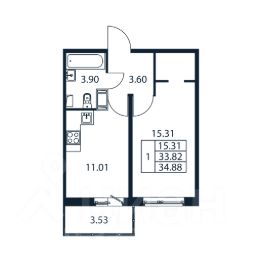 Прямая продажа от застройщика! Готовая Однокомнатная квартира 33.3 кв.м с кухней 11.01 кв.м с предчистовой отделкой на 11 этаже в сданном ЖК "Полис Лаврики".