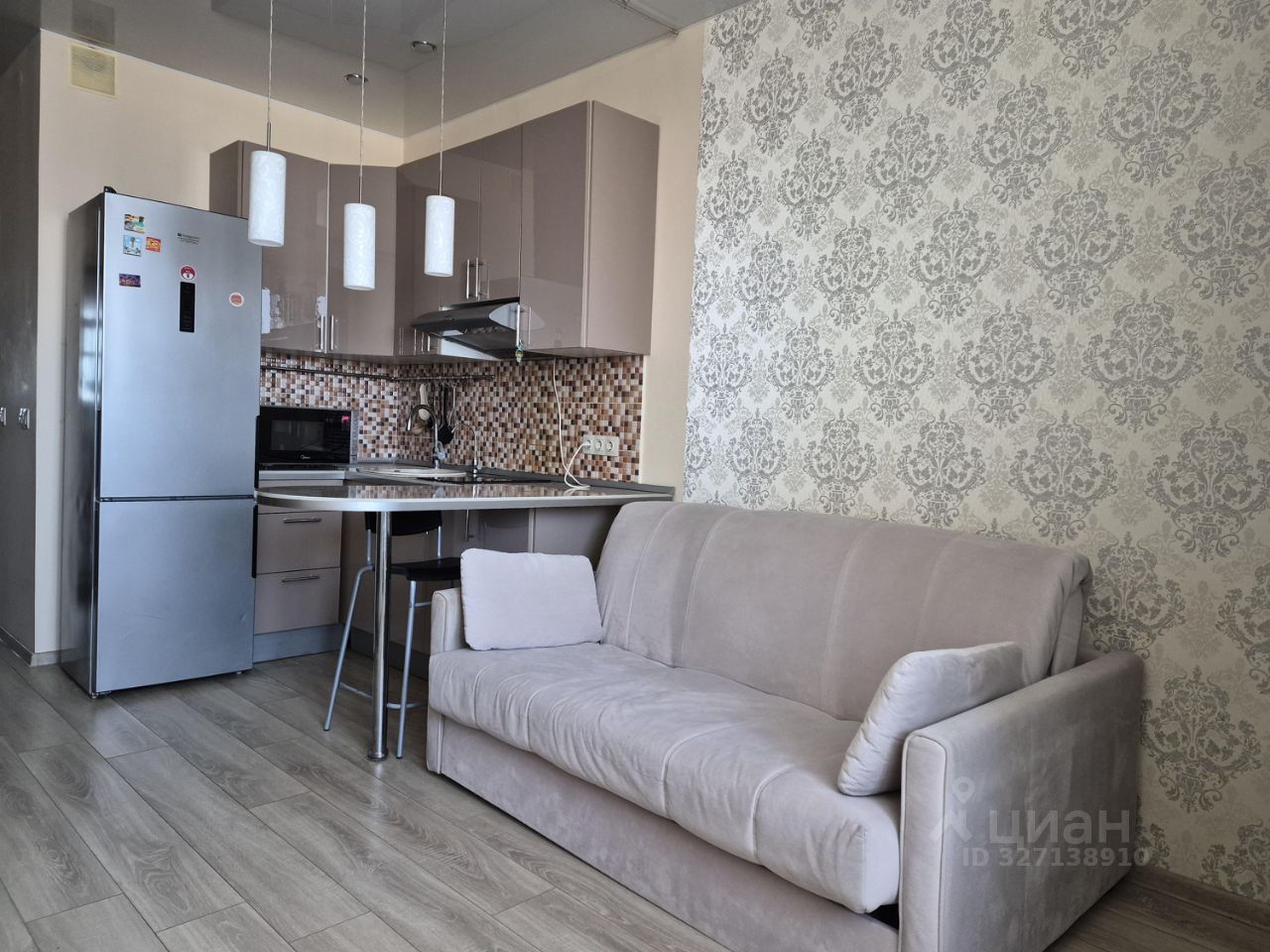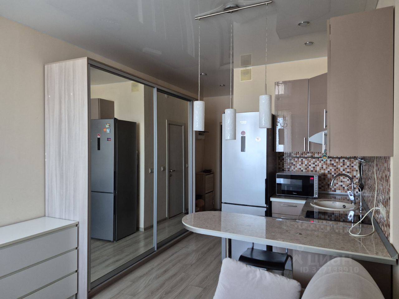 Студия полностью оборудована мебелью и бытовой техникой: