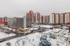 Кухня просторная, правильной формы- 13 кв.м., легко помещается диван для гостей.