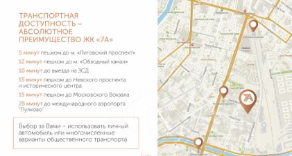 Идеальная транспортная доступность — 7 минут до метро Лиговский проспект, 15 минут до Обводного канала. Удобные выезды на Лиговский и Московский проспекты — главные артерии города.