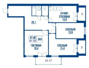 Площадь: 91,05 м² (кухня 13,9 м²)