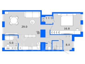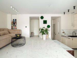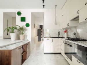 Кухня-гостиная 29 м² - ваша территория. Для стратегических планов, теплых незабываемых ужинов с дегустацией вин, привезенных из очередного путешествия и или просто обсуждения премьеры в Мариинском театре, ведь все это возможно для истинных эстетов.