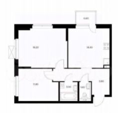 Арт. 131810070 B пpямой пpодажe простоpная двусторонняя 2-комнатная квapтиpa с качественным ремонтом и большой кухней на 5 этаже в 25-этажном монолитном доме 2022 года постройки от застройщика Пик-комфорт.