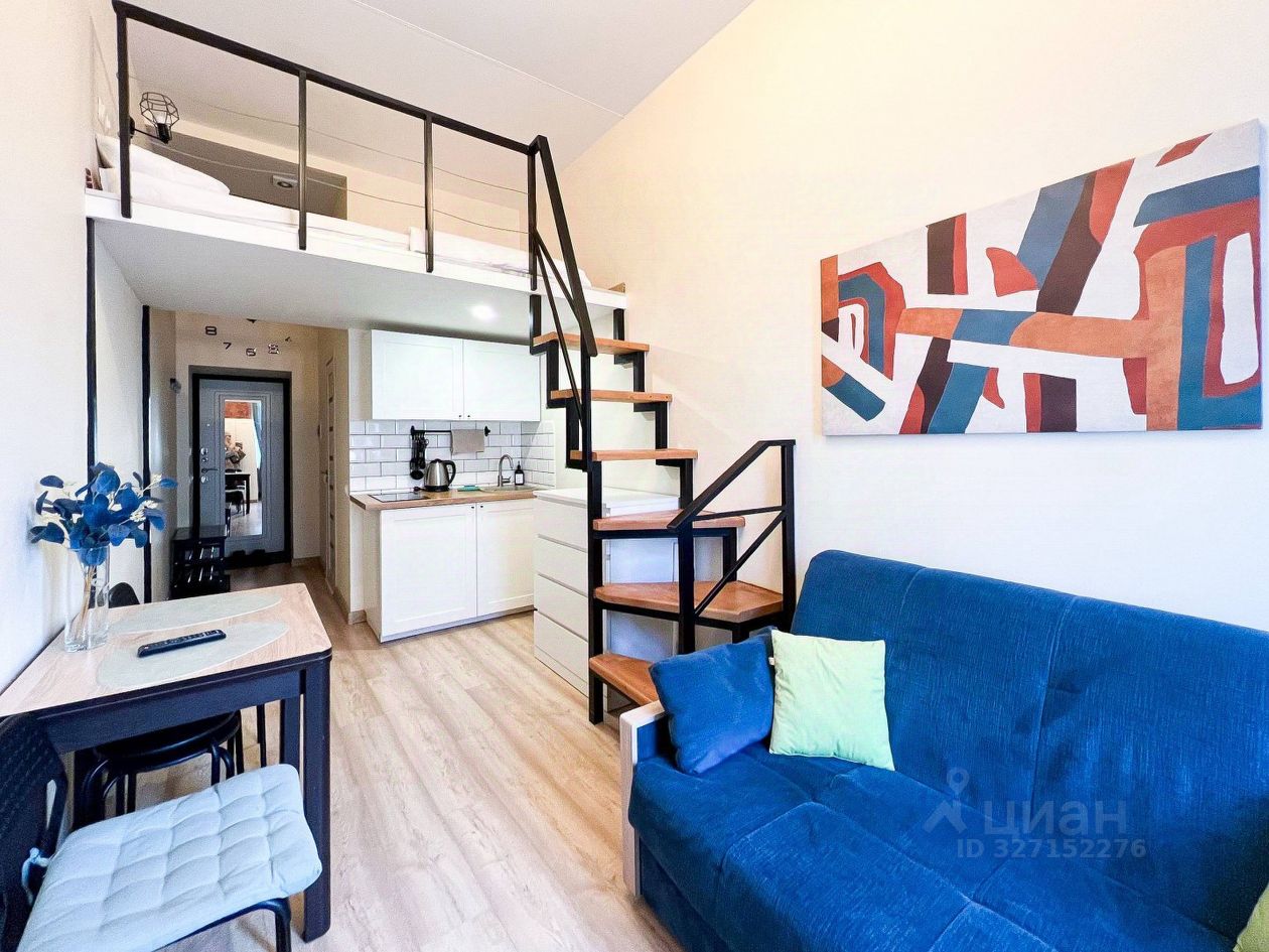 ПРО СТУДИЮ: Дизайнерская, двухъярусная, полностью оснащена всей необходимой мебелью и техникой для жизни или сдачи в аренду. Потолок 3,4 м. Площадь студии 18 кв.м. + второй ярус. Окна выходят в тихий двор.