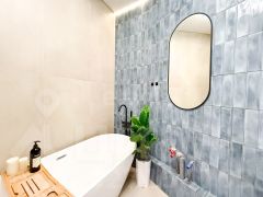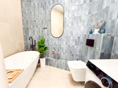 - Санузел совмещенный. Установлена стиральная машина с сушкой (2 в 1), инсталляция, а также отдельно стоящая ванная.