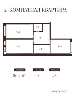 80.9 кв.м.—2 комнаты и кухня-гостиная. Потолки 3 метра. Грамотная планировка.