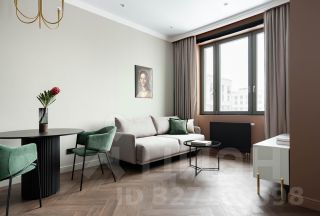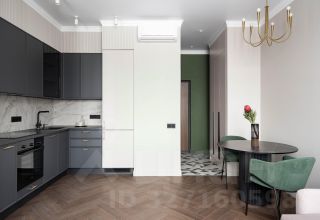 Однокомнатная квартира общей площадью 45 кв. м с продуманной планировкой. Два санузла, кухня-гостиная и мастер-спальня.