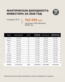 - Средняя фактическая доходность 1 026 000 р - 1 510 000 р (закрытая аналитика компании за 2025 год) без учета капитализации актива
