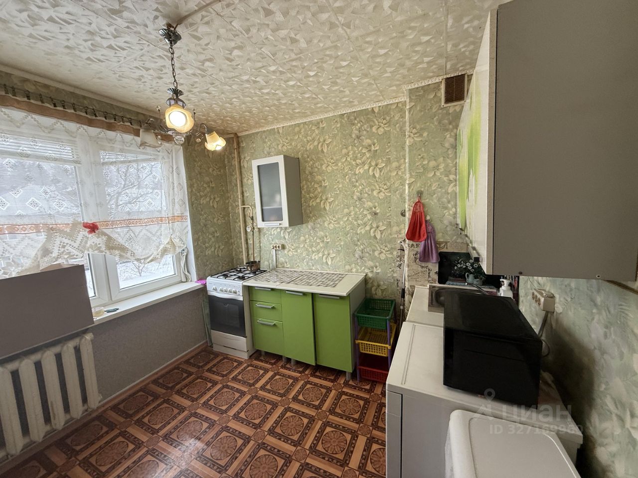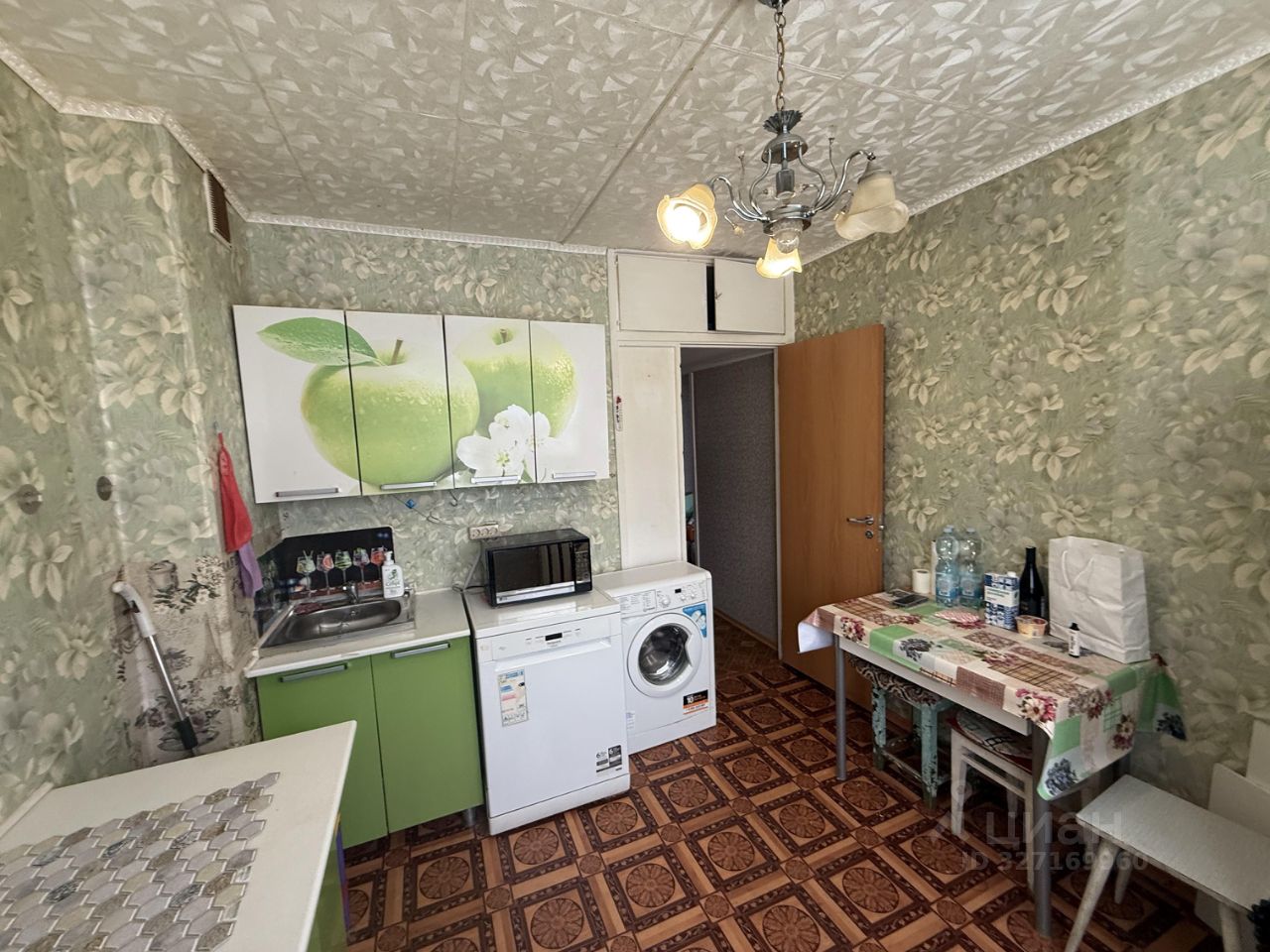 Квартира продается с мебелью и бытовой техникой.Кухня площадью 9 м² оборудована необходимой бытовой техникой, включая холодильник и стиральную машину. В комнате установлен шкаф для хранения вещей. Санузел раздельный, оформлен в темных тонах с декоративными элементами.В прихожей предусмотрены удобные шкафы для верхней одежды.