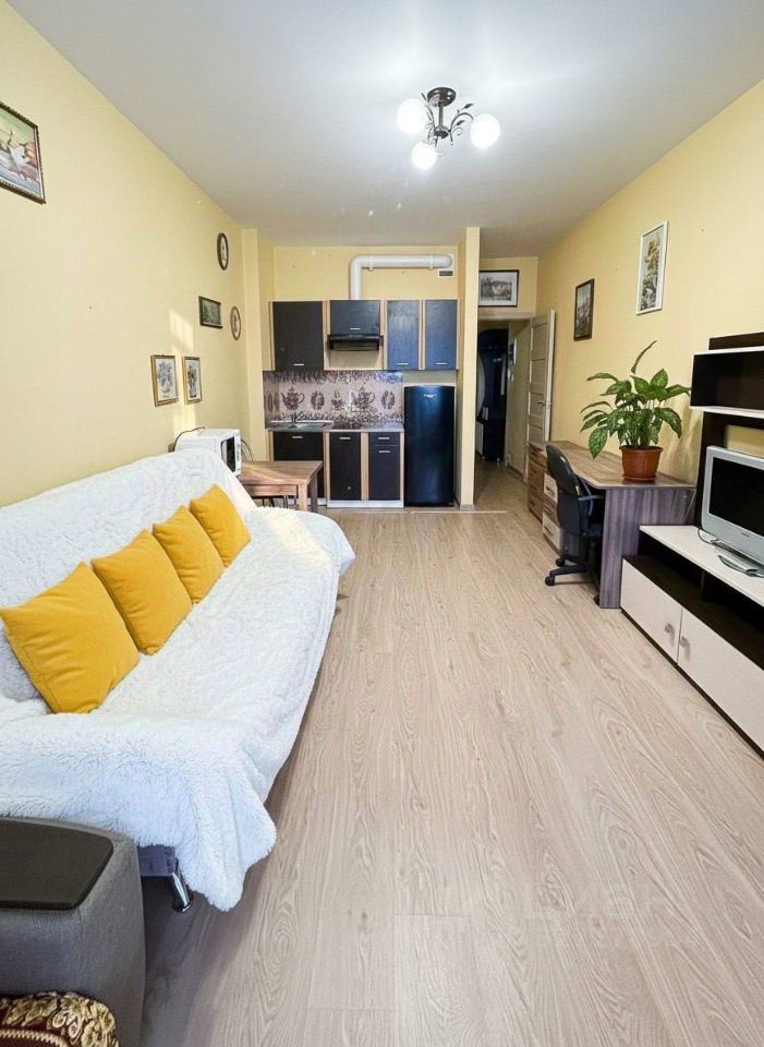 Студия находится на комфортном 5 этаже с панорамным видом на парк, жилая зона 18 кв.м. Ремонт свежий в хорошем состоянии, оснащена всей необходимой мебелью и техникой - все остается новому владельцу. Кухонная зона оборудована также всем необходимым. Застекленная лоджия с витражными окнами и системой хранения. Санузел совмещенный: душевая кабина и стиральная машина. Заезжай и живи.