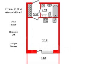 Продается просторная студия в ЖК "Притяжение" в Выборгском районе.