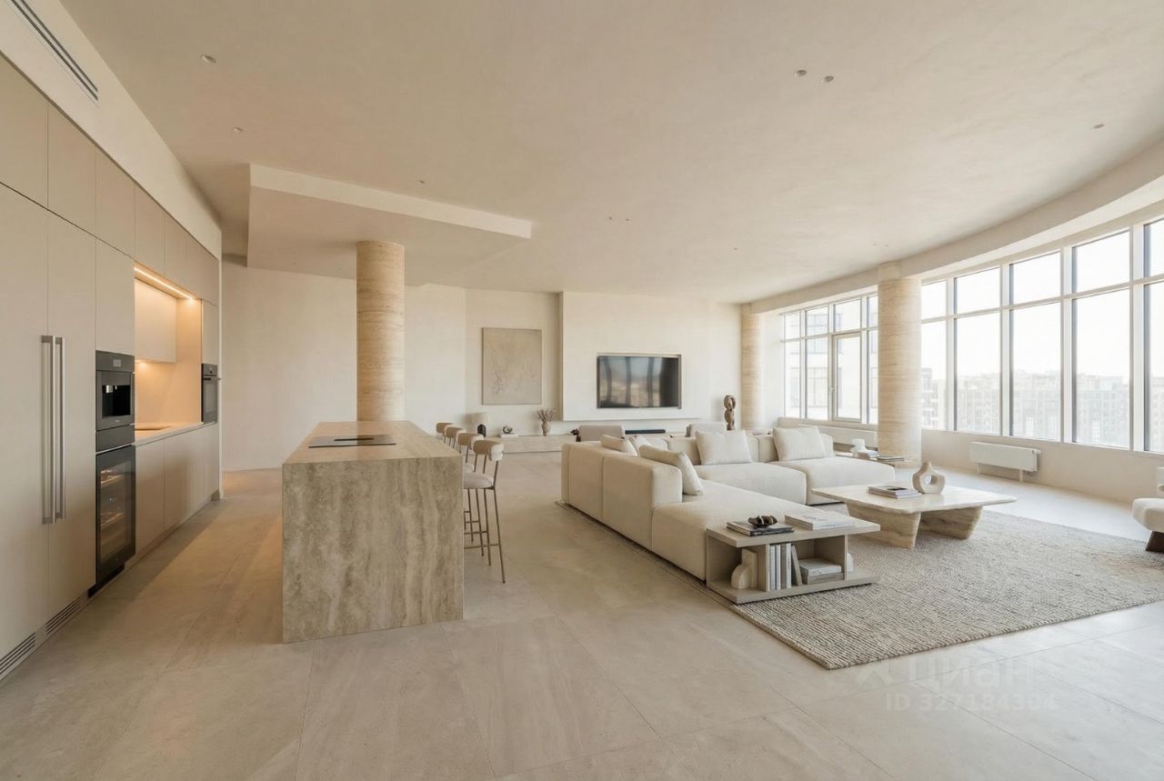 Пространство квартиры масштабное, светлое и логично зонированное, при этом остаётся гибким для адаптации под будущий дизайн-проект.