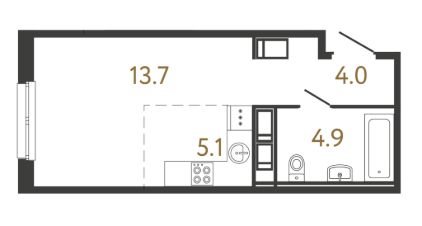 Просторная студия в ЖК Передвижники от RBI с подчистовой отделкой.