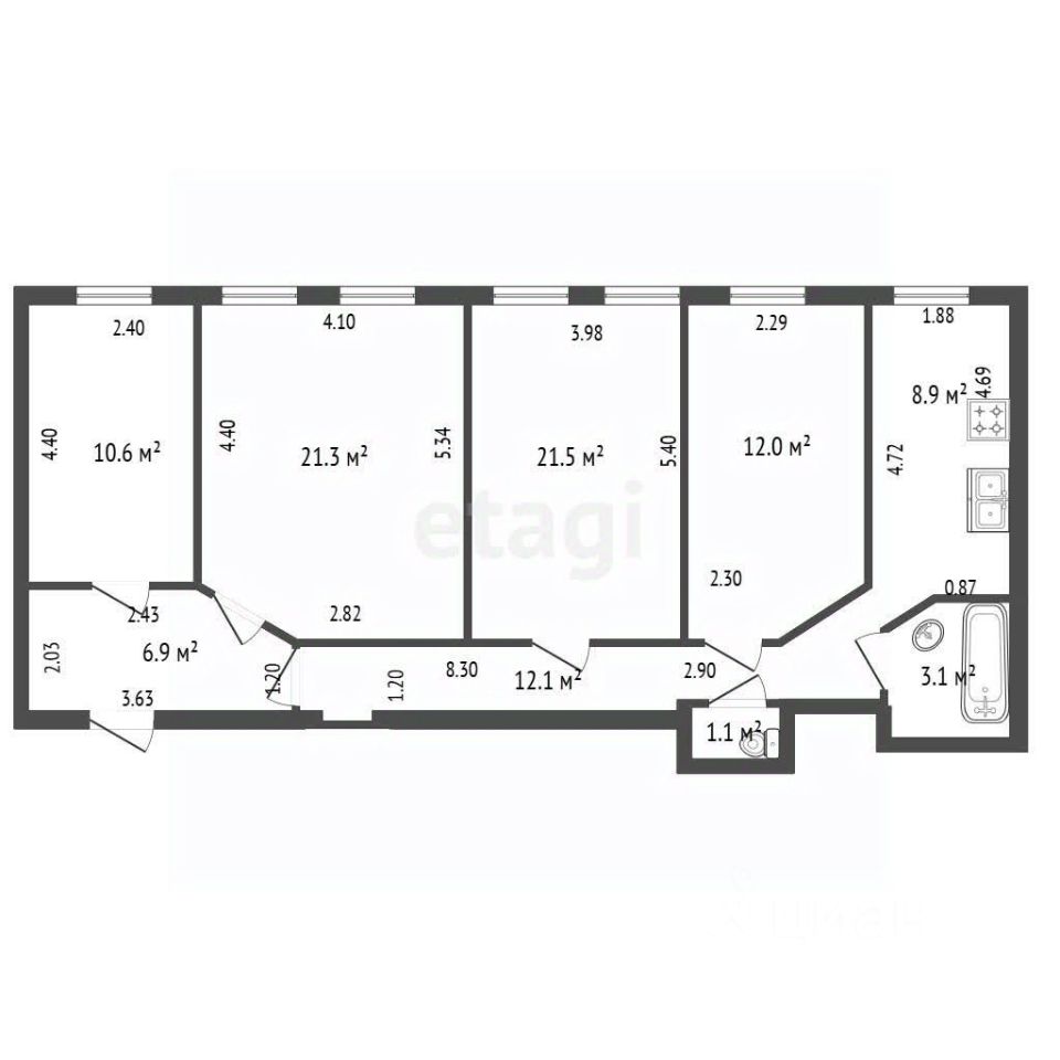 — 21,3 кв.м — просторная, светлая, правильной формы