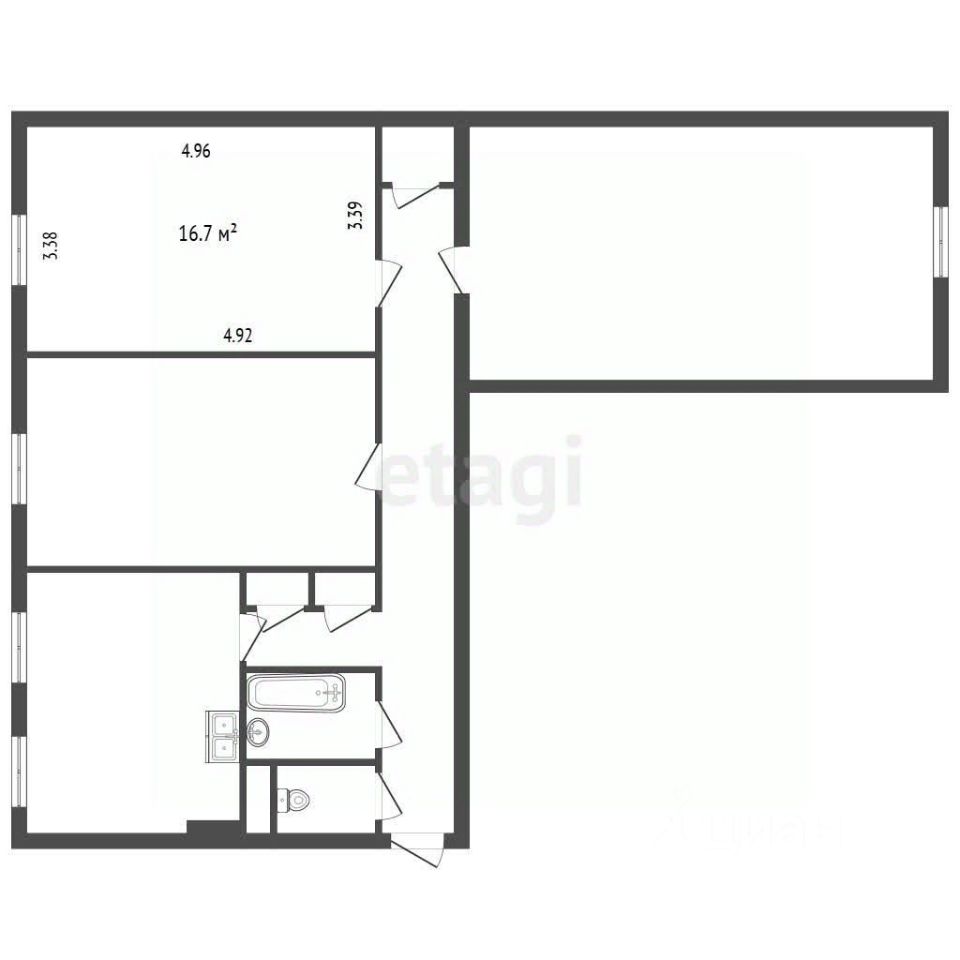Комната 16.07 м кв в 3-х комнатной коммунальной квартире . Одна комната закрыта. По факту - один сосед. Комфортно для проживания.