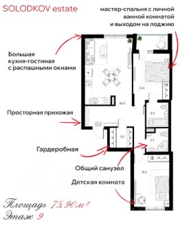 Функциональная и эргономичная планировка. Свежий дизайнерский ремонт с использованием натуральных материалов. Деревянный паркет французской кладки ( herringbone ) в кухне-гостиной, увеличенные окна с видом на город и закаты, стильные молдинги на стенах, встроенный ТВ, кондиционер. В кухонной зоне имеется вся необходимая техника, удобное и просторное место для готовки. Вместительная мастер-спальня с лоджией и сан.узлом. В ванной крупноформатный, цельный керамогранит под мрамор, фристайлинговая ванна, инсталляция, теплый пол по всей квартире, где напольное покрытие керамогранит. Вместительная гардеробная при входе в квартиру, много скрытых мест под хранение вещей. Второй сан.узел с увеличенной душевой кабиной, скрытый коллекторный шкаф. Большая детская комната с игровой и спортивной зоной для ребенка, окна выходят в закрытый двор на детскую площадку с полным обзором из квартиры.