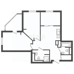 Планировка включает три изолированные комнаты, два отдельных санузла, просторную гардеробную и продуманную систему встроенных шкафов, что обеспечивает максимум полезного пространства и порядка.