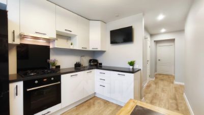 - продается с качественным кухонным гарнитуром (фабрики "Мария") и встроенной техникой (варочная панель, духовой шкаф, посудомоечная машина, вытяжка). Остальную мебель частично могут оставить по договоренности
