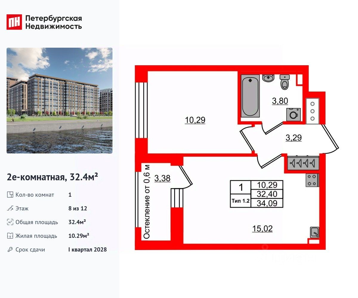 Удобная, классическая, функциональная европланировка, большая кухня-гостиная 15.02 м², вместительная прихожая 3.29 м². Общая площадь квартиры - 32.4 м², жилая 10.29 м², высота потолка 2.77 м.