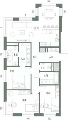 Продается трехкомнатная квартира с предчистовой отделкой в ЖК "ЛЕГЕНДА на Охте" на 3 этаже. Общая площадь: 100.8 кв.м., жилая: 37.1 кв.м., площадь просторной кухни-столовой: 32.7 кв.м. Квартира без проходных комнат, окна выходят нa три cтopoны дома. В квартире один совмещенный и один раздельный санузел. Высота потолков 2.7 м.