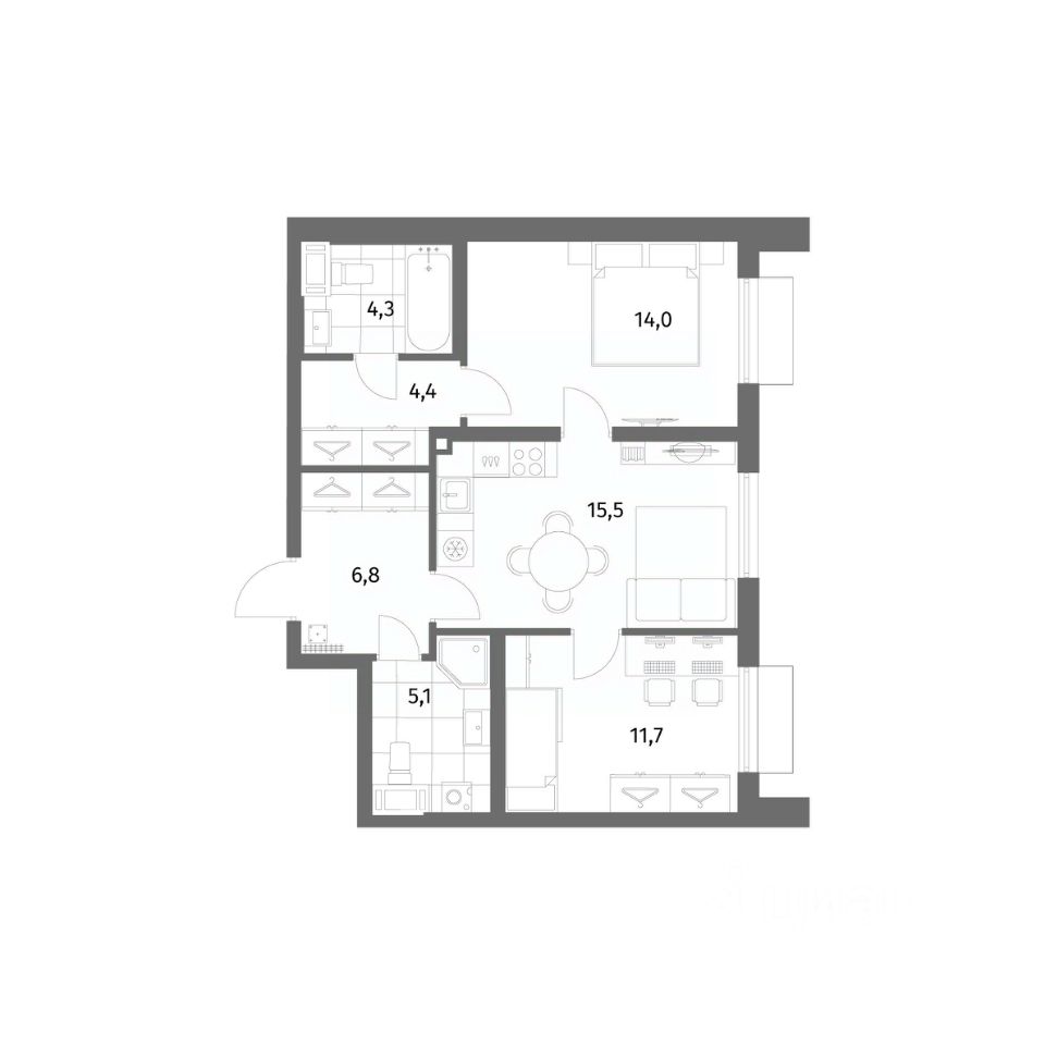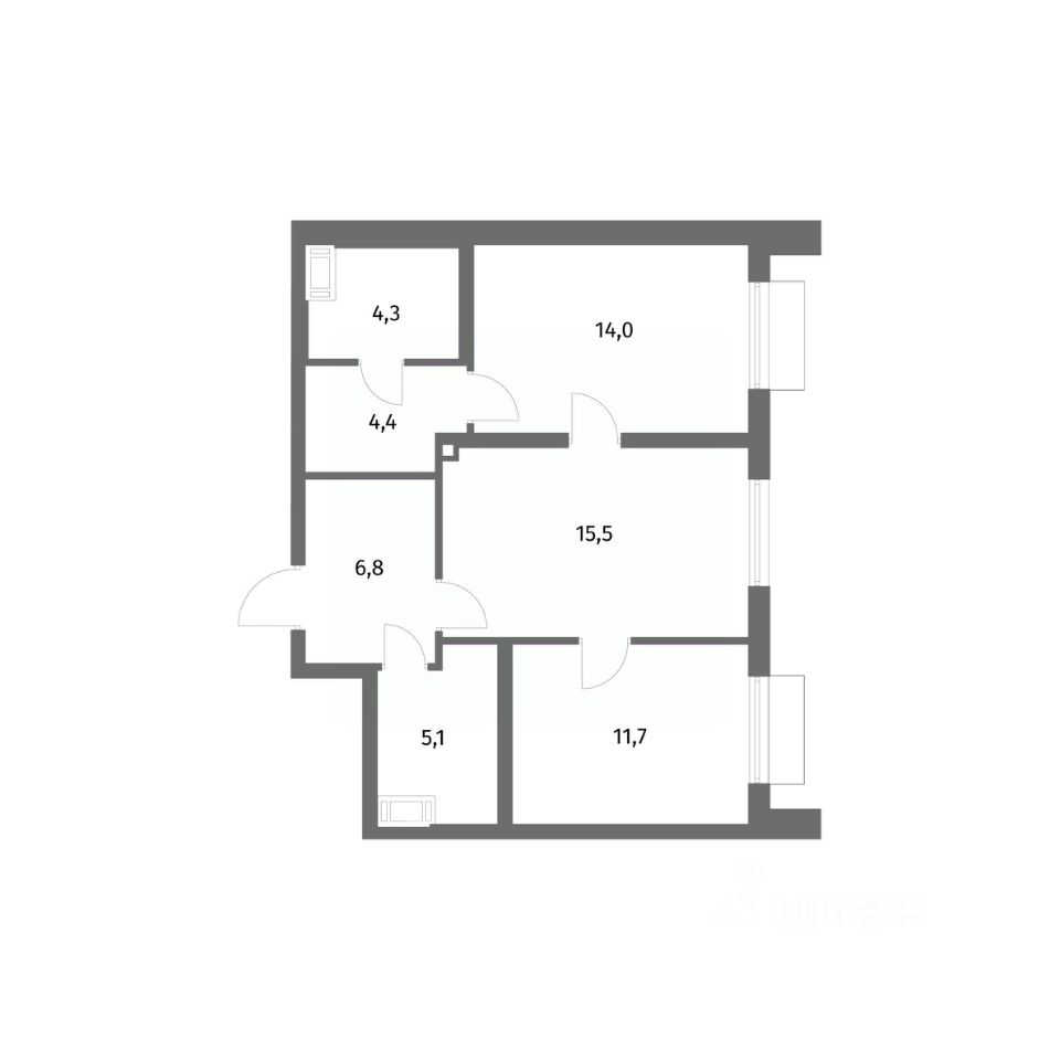Продается квартира площадью 61.8 м²
