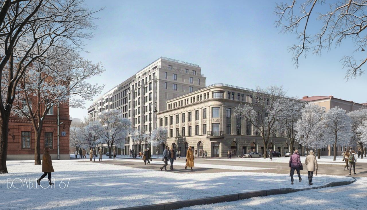"Большой, 67" находится в историческом районе города, сочетающем энергию развивающейся бизнес-локации, культурно-досугового центра и аутентичные особенности Васильевского острова. Район уже приобрёл статус модной локации с самыми трендовыми заведениями города.
