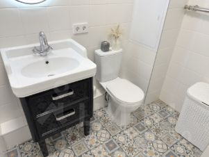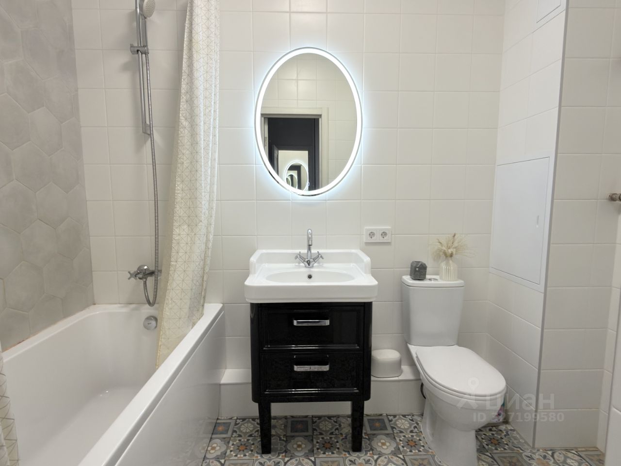 В квартире выполнен качественный ремонт: ванная комната отделана стильной керамической плиткой Kerama Marazzi, тумба и раковина - Kerama Marazzi, ванна - Roca. Напольное покрытие в коридоре и на кухне - керамогранит, в комнате - ламинат высокой износостойкости. Обои выкрашены в элегантный молочный оттенок.