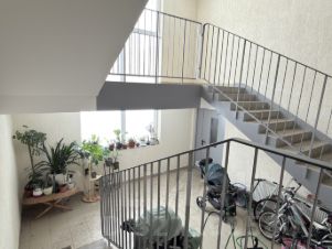 Из кухни есть выход на просторный балкон с перспективным видом.