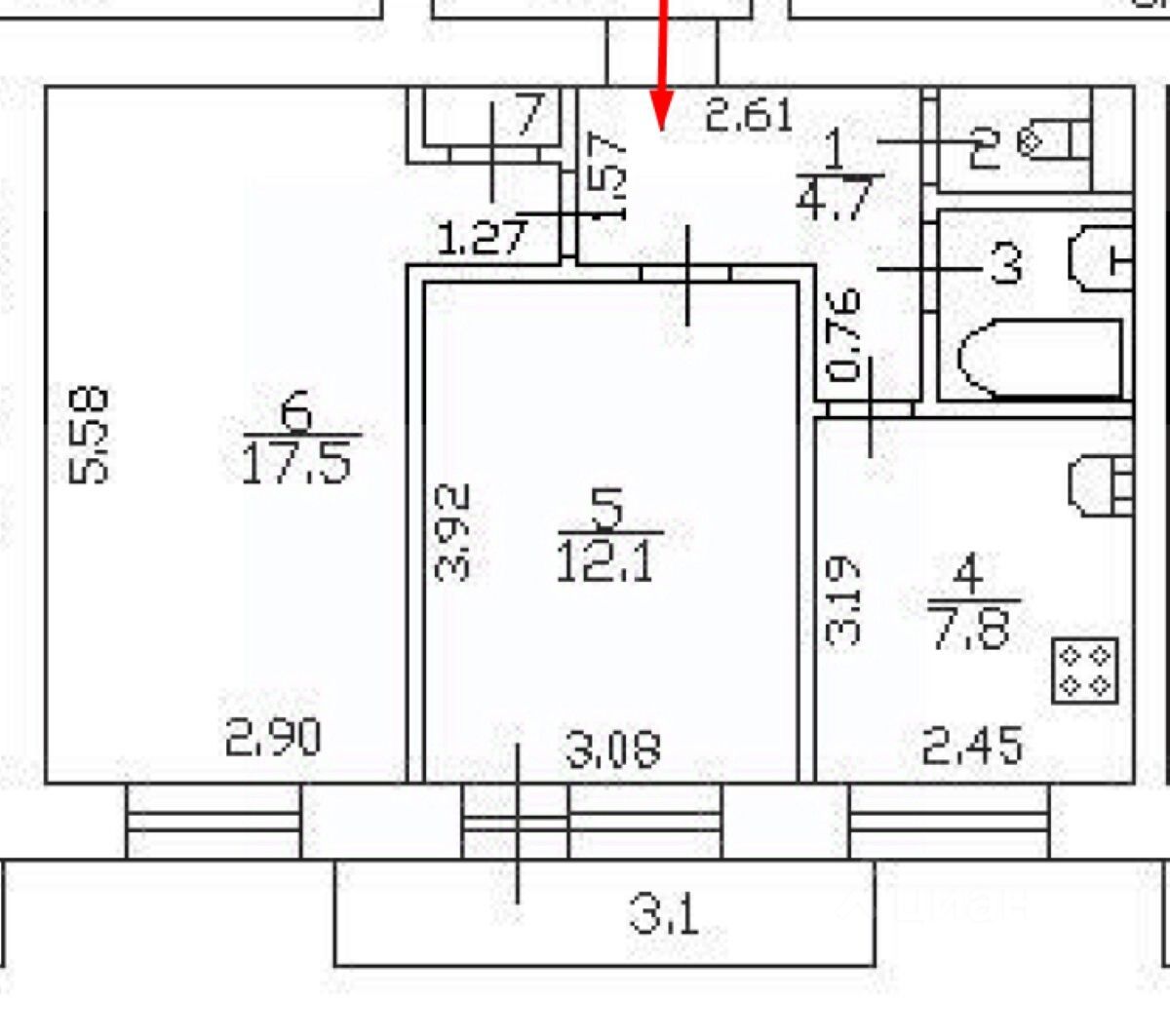 + Удобная планировка: 2 изолированные комнаты правильной формы, раздельные санузлы, вместительная кухня = 7.8 кв.м., есть встроенный шкаф=0.6 кв.м.(его можно демонтировать и обустроить удобную гардеробную).