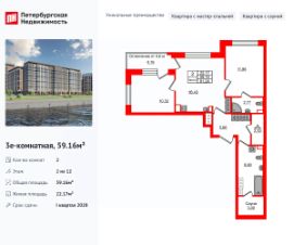 Продается просторная 2-комнатная квартира от застройщика в жилом комплексе "Сэтл Ривьера" в активно развивающимся Невском районе.