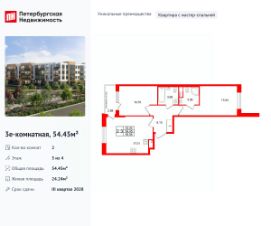 Уникальная, функциональная европланировка, большая кухня-гостиная 17.01 м², вместительная прихожая 6.15 м². Общая площадь квартиры - 54.45 м², жилая 24.24 м², высота потолка 2.77 м.
