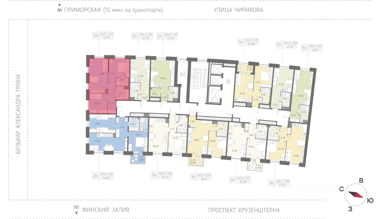 Развитая сеть общественного транспорта, удобные выезды на ЗСД позволят быстро добраться в любую точку Санкт-Петербурга. В 13 минутах ходьбы в перспективе запланировано открытие станции метро "Морской фасад", что улучшит транспортную доступность локации и повысит ее инвестиционную привлекательность.