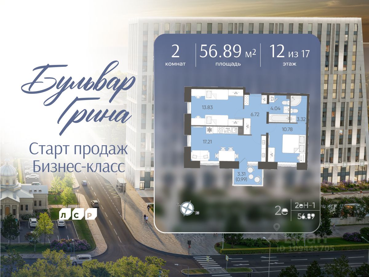 Продается 2-комнатная квартира в ЖК "Бульвар Грина" на 12 этаже. Общая площадь составляет 56.89 кв. м. Квартира с white box отделкой. Срок сдачи: 4-кв. 2028. Жилой комплекс "Бульвар Грина" располагается по адресу Санкт-Петербург, Василеостровский.