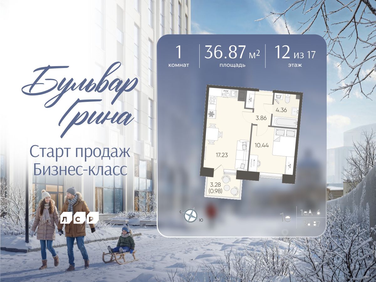 Продается 1-комнатная квартира в ЖК "Бульвар Грина" на 12 этаже. Общая площадь составляет 36.87 кв. м. Квартира с white box отделкой. Срок сдачи: 4-кв. 2028. Жилой комплекс "Бульвар Грина" располагается по адресу Санкт-Петербург, Василеостровский.