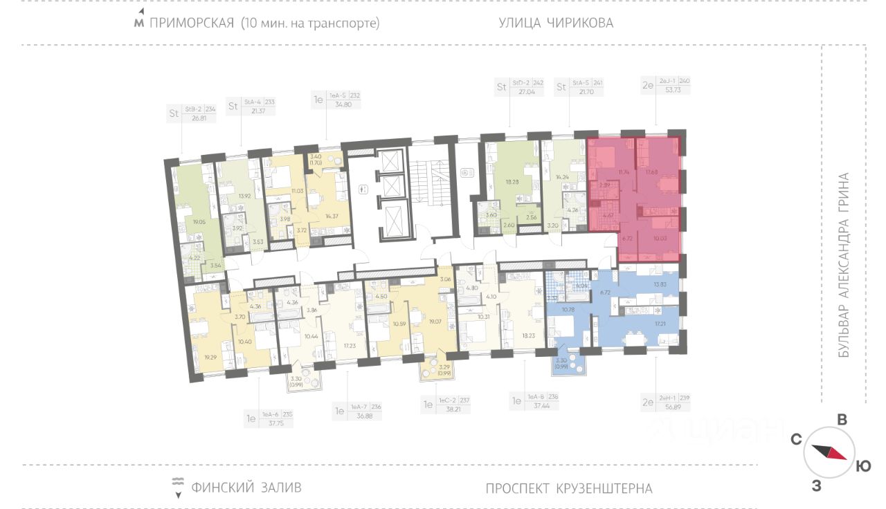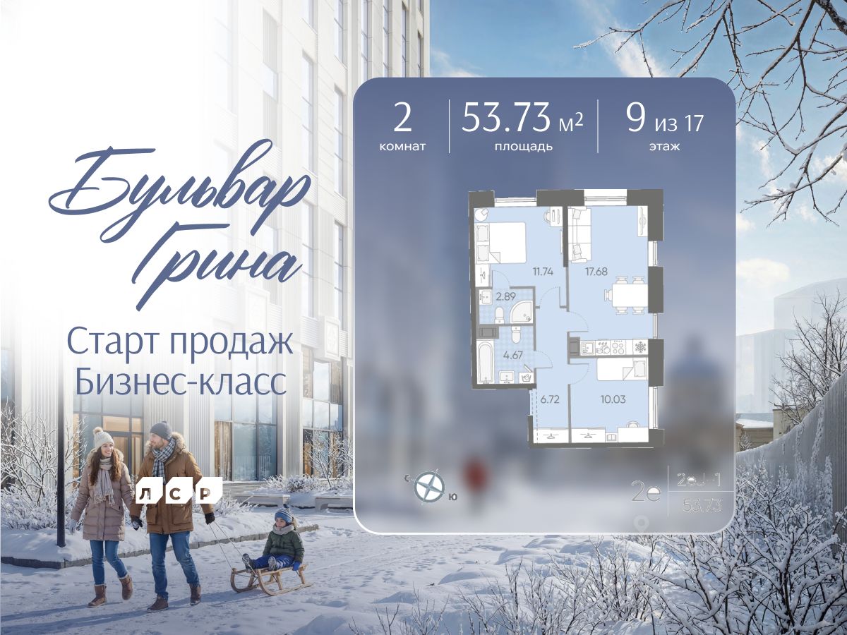 Продается 2-комнатная квартира в ЖК "Бульвар Грина" на 9 этаже. Общая площадь составляет 53.73 кв. м. Квартира с white box отделкой. Срок сдачи: 4-кв. 2028. Жилой комплекс "Бульвар Грина" располагается по адресу Санкт-Петербург, Василеостровский.