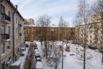 Дом кирпичный, с железобетонными перекрытиями. Толстые стены, высокие потолки, отличная шумоизоляция. Здесь тихо и спокойно. Всего четыре этажа, квартира расположена на комфортном третьем. Чистая парадная, аккуратная придомовая территория, управляющая компания следит за порядком. Соседи порядочные, спокойные.