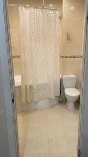Совмещенный санузел с качественной сантехникой и стиральной машиной.
