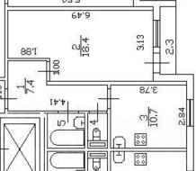 комнатная квартира с балконом, общая площадь - 40,1 м.