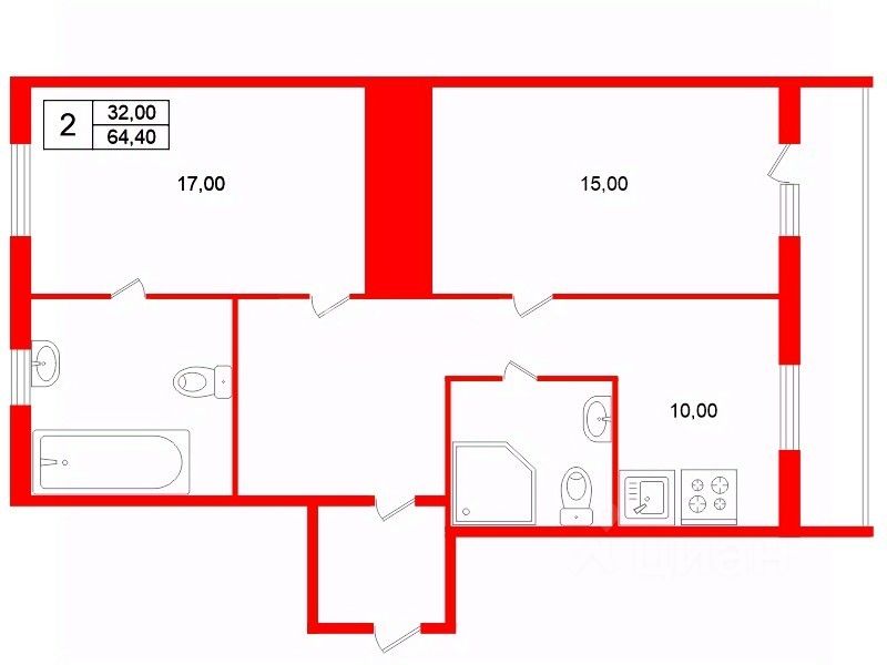 32 м²