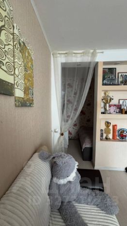 В комнате сделана закрытая перегородка, которая разделяет гостиную и отдельное спальное место.
