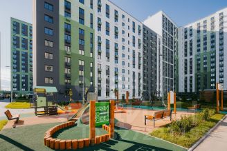 Между домами будут устроены бульвары, пешеходные и велодорожки, игровые и спортивные площадки, зоны отдыха для детей и взрослых. На первых этажах находятся колясочные, магазины, кафе и сервисные службы.