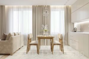 Просторная кухня-гостиная площадью 31 м² станет центром притяжения для всей семьи и друзей: здесь будет удобно готовить, проводить время вместе и устраивать ужины.