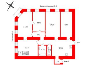 Номер объявления: 21402 - назовите его оператору. 5-комнатная квартира на Васильевский остров — угол 17-й линии и Средний проспект Васильевского острова