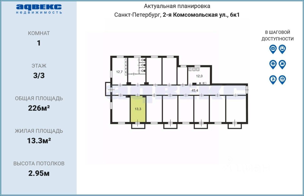 13,3 м²