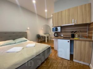 В студии выполнен качественный дизайнерский ремонт, оборудована всей необходимой мебелью и техникой: кровать с комплектами постельного белья, телевизор, стол, за которым можно и работать, стулья, плита, холодильник, кухонный гарнитур, места для хранения. Совмещенный санузел.