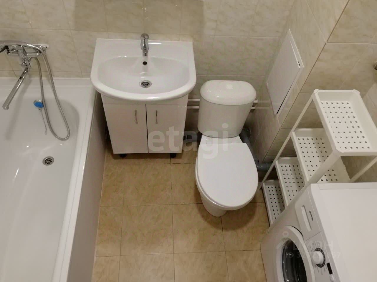 Планировка квартиры рациональная: изолированная комната, совмещенный санузел с современной отделкой и функциональная кухня с окном.