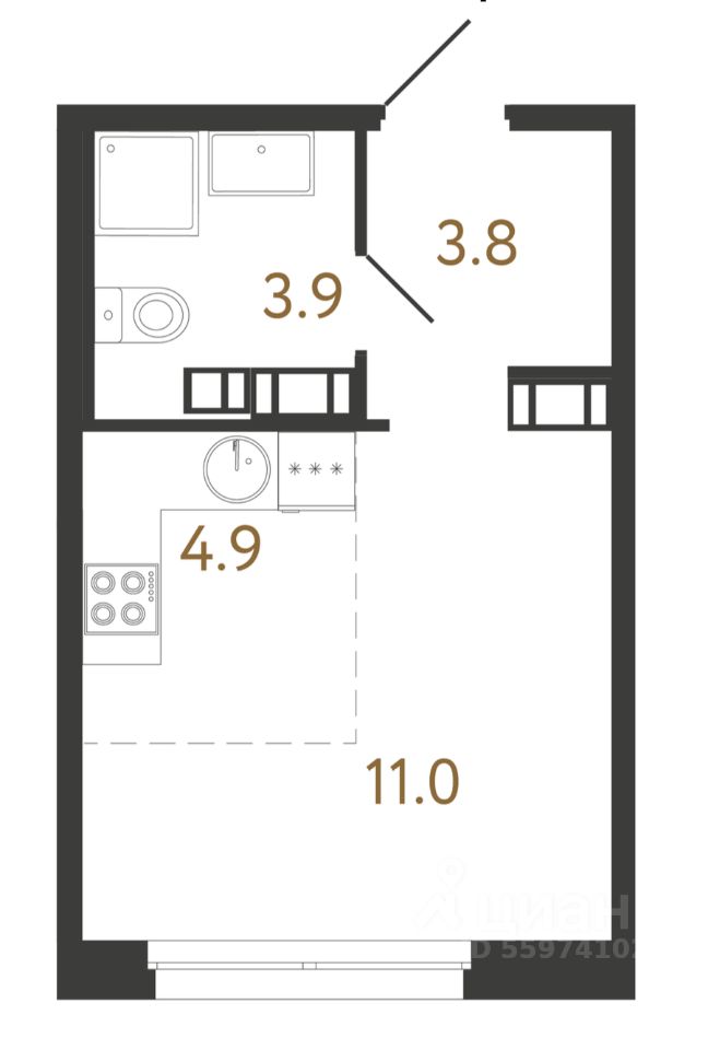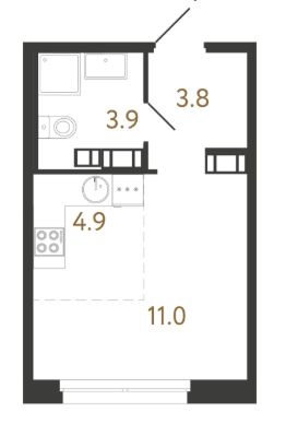 Студия в ЖК Куинджи от RBI с подчистовой отделкой. Окна на запад (закатная сторона), во двор.