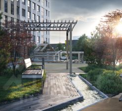 Территория комплекса благоустроена — имеется приватный озелененный двор с ручьем, зоной отдыха с беседкой и шезлонгами, детскими площадками из натуральных материалов и огромными качелями. Проект создан в эксклюзивном дизайн-коде, вдохновленном картинами великого художника. Во дворе расположено 3 арт-объекта от резидента музея "Эрарта", Владимира Полякова. Также на территории квартала предусмотрен детский сад.