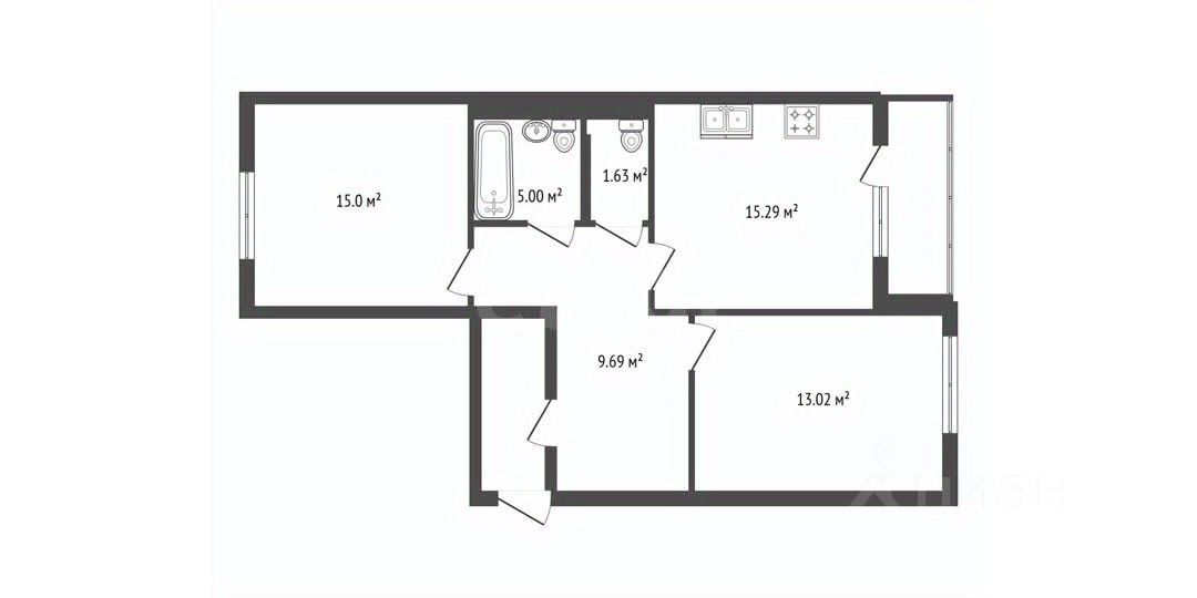 1) Планировка практичная и функциональная: две изолированные комнаты, просторная кухня-гостиная 15 кв. м и два современных санузла с теплым полом. Балкон застеклен, утеплен и также оборудован системой подогрева, что позволяет использовать его как полноценное жилое пространство круглый год.