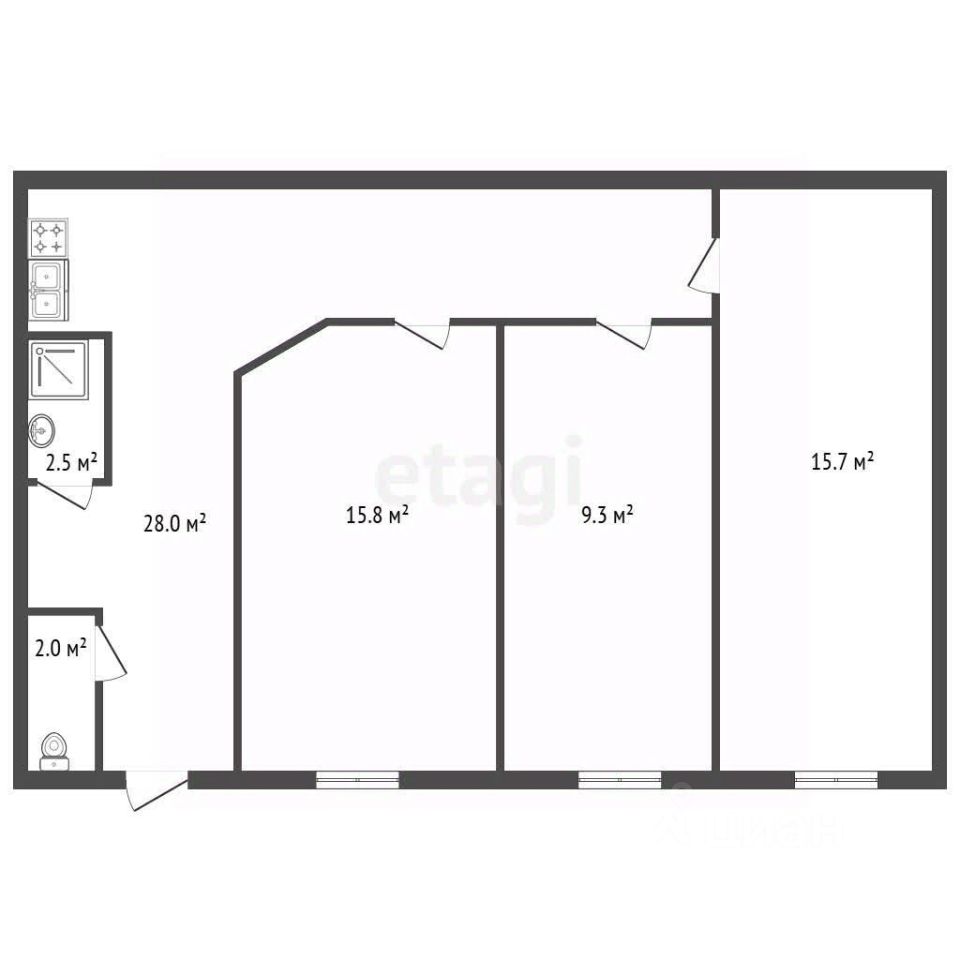 1 комната-15,8кв.м., 2 комната-9,3кв.м., зал-15,7кв.м.